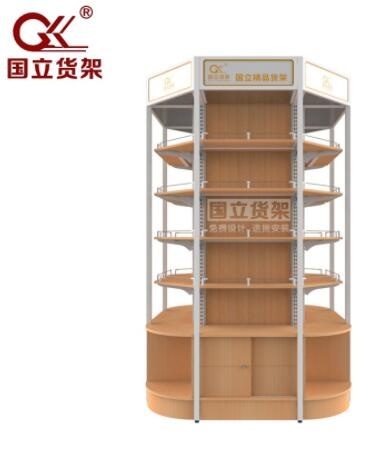 母嬰店四面包柱帶地柜款四面展示貨架